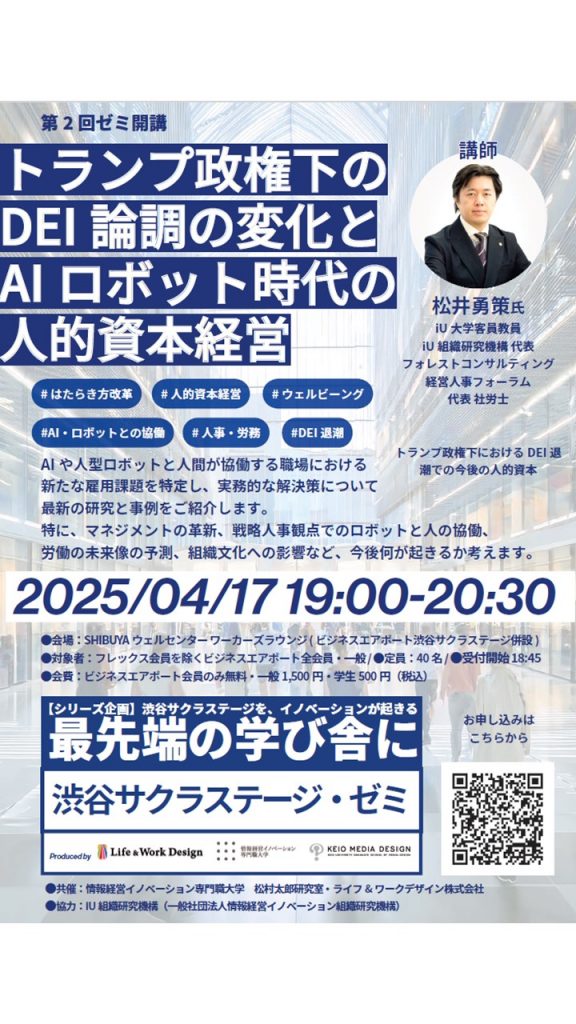 【開催終了】4月オフラインイベント「トランプ政権下のDEI論調の変化とAIロボット時代の人的資本経営」