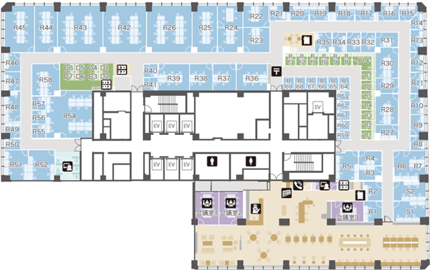 ご契約者様専用の専有オフィススペースです。1名から数十名までお使いいただけるスペースをご用意しております。