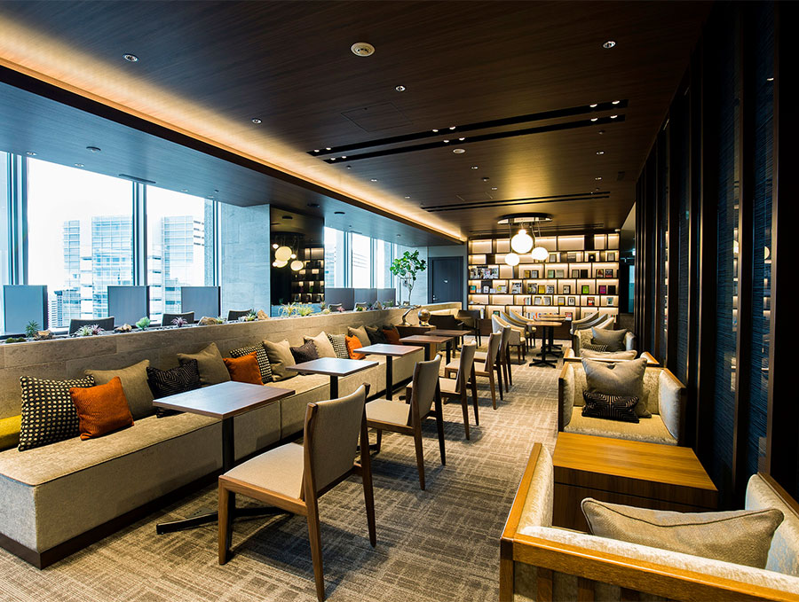 ビル28階から見下ろす眺望と、さまざまな仕様のお席をご用意し、シーンや気分に合わせて自由自在な使い方が出来るワークスペースをご提供しています。